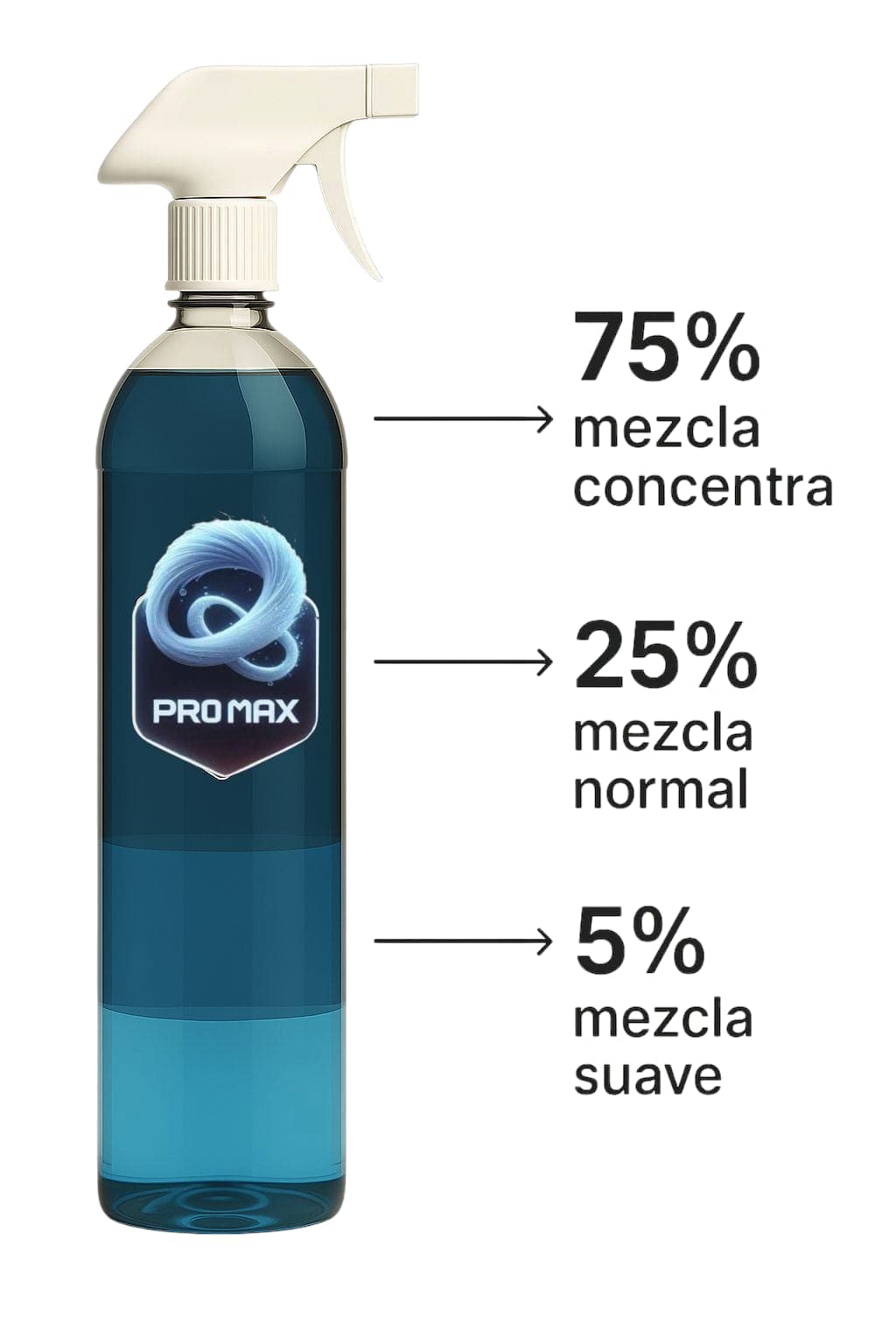 PRO MAX viene altamente concentrado. Solo necesitas diluirlo en agua según la superficie a limpiar.